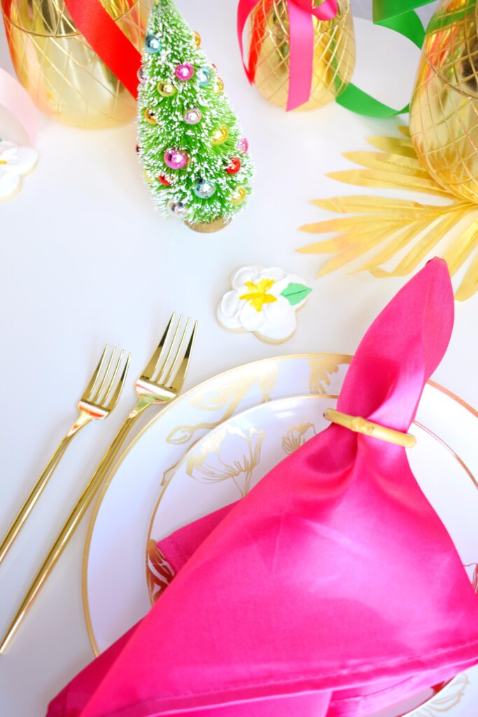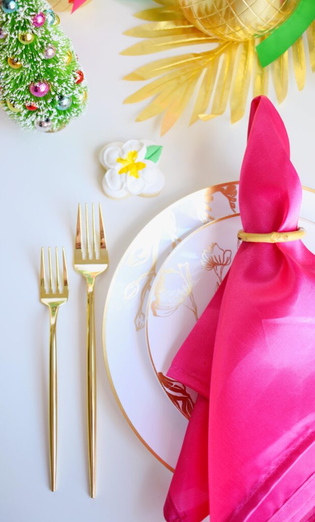 When deciding on a theme for a tablescape or party, choose something you love. Your passion will show through! One of our most amazing family trips growing up was to Hawaii. It was perfect, and I think about it all the time. And that is how our Mele Kalikimaka Christmas came to be! It came together so easily, and every time I look at it all I smile.