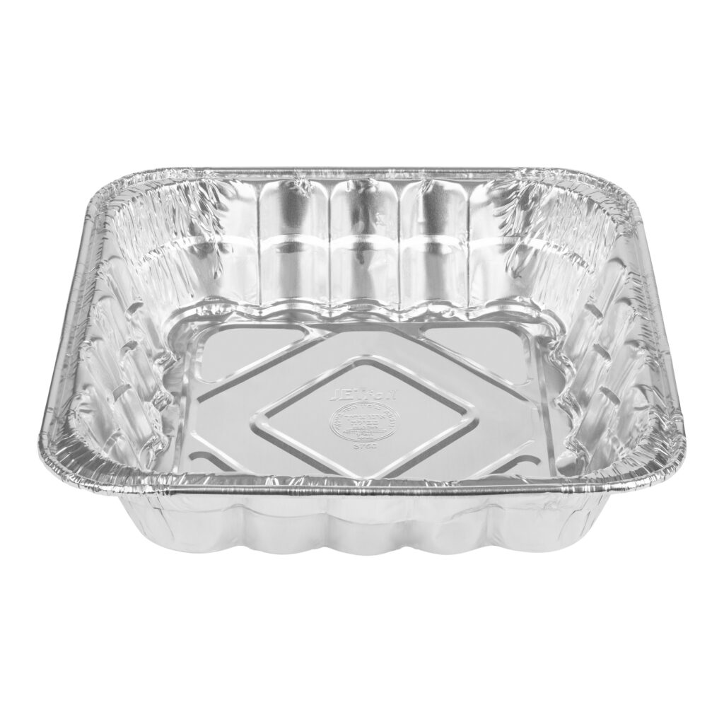 Enjoy ample room with these heavy duty 10” square aluminum foil pans!