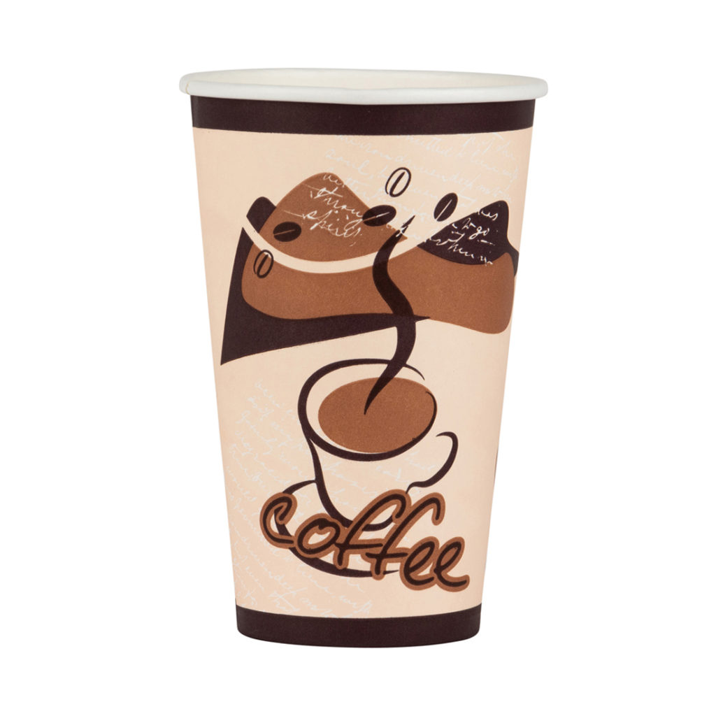 Stylish and practical, these coffee design paper hot cups are perfect for use at home or for coffee shops, cafés or concession stands. The inner coating on these cups can tolerate high temperatures and also prevent leaks, making them ideal for hot beverages.