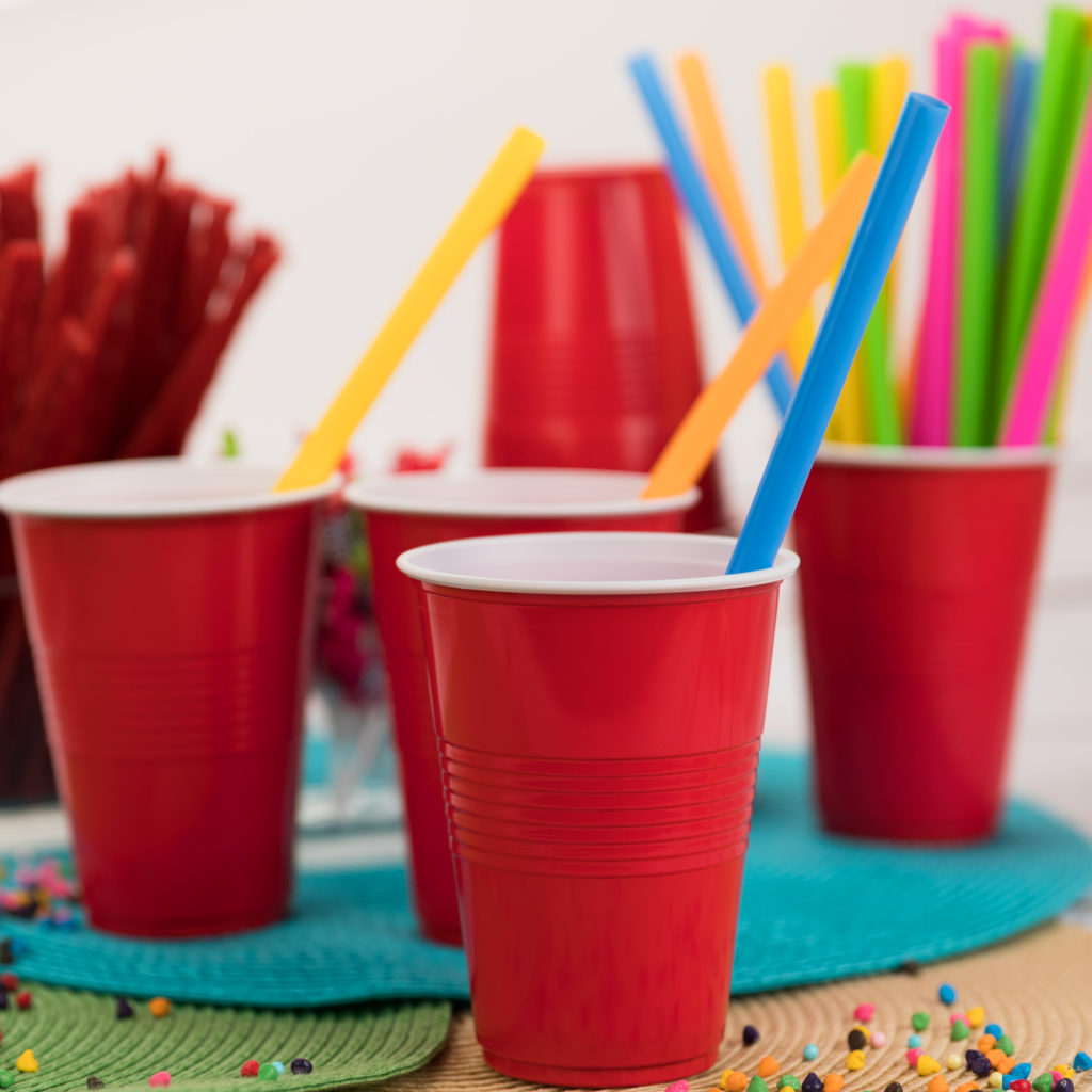 Cheerful and fun, these red cups bring color to every party. The strong quality plastic and beautiful white interior charms crowds and brightens the atmosphere.