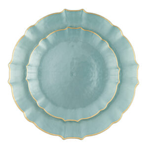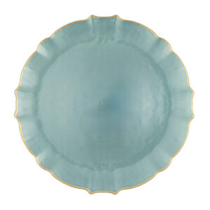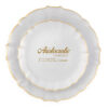 An elegant statement piece with a soft pearled finish and a delicate gold-trimmed scalloped edge—this aristocratic plate brings refined charm and timeless luxury to any table.