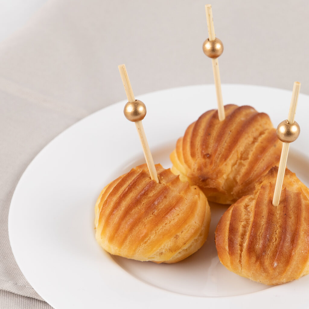Complete the presentation of sliders or other stacked food combos with a beautiful gold bamboo pick. These bamboo picks hold food together while enhancing the plating of a dish.