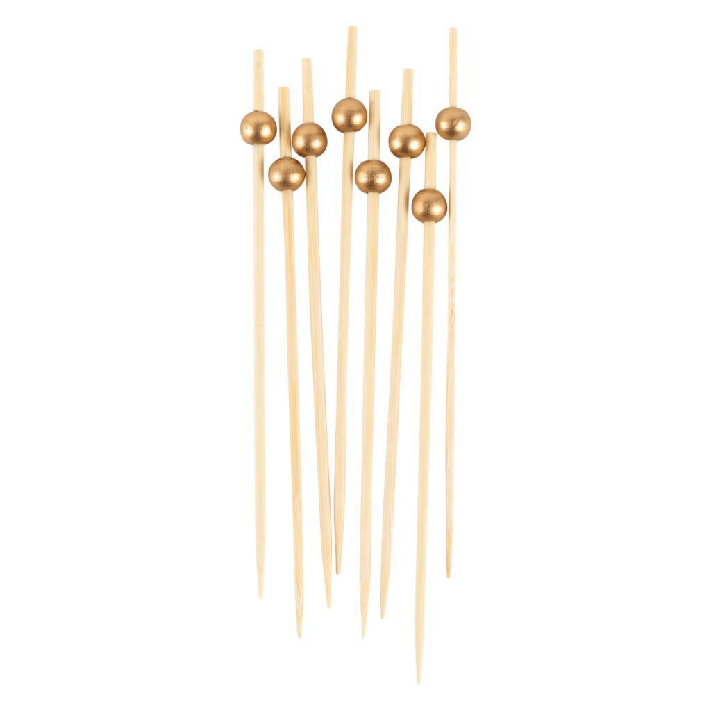Complete the presentation of sliders or other stacked food combos with a beautiful gold bamboo pick. These bamboo picks hold food together while enhancing the plating of a dish.