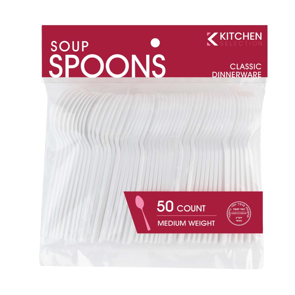 Basic Cutlery Collection, White Soup Spoons Medium Weight (50 Count)