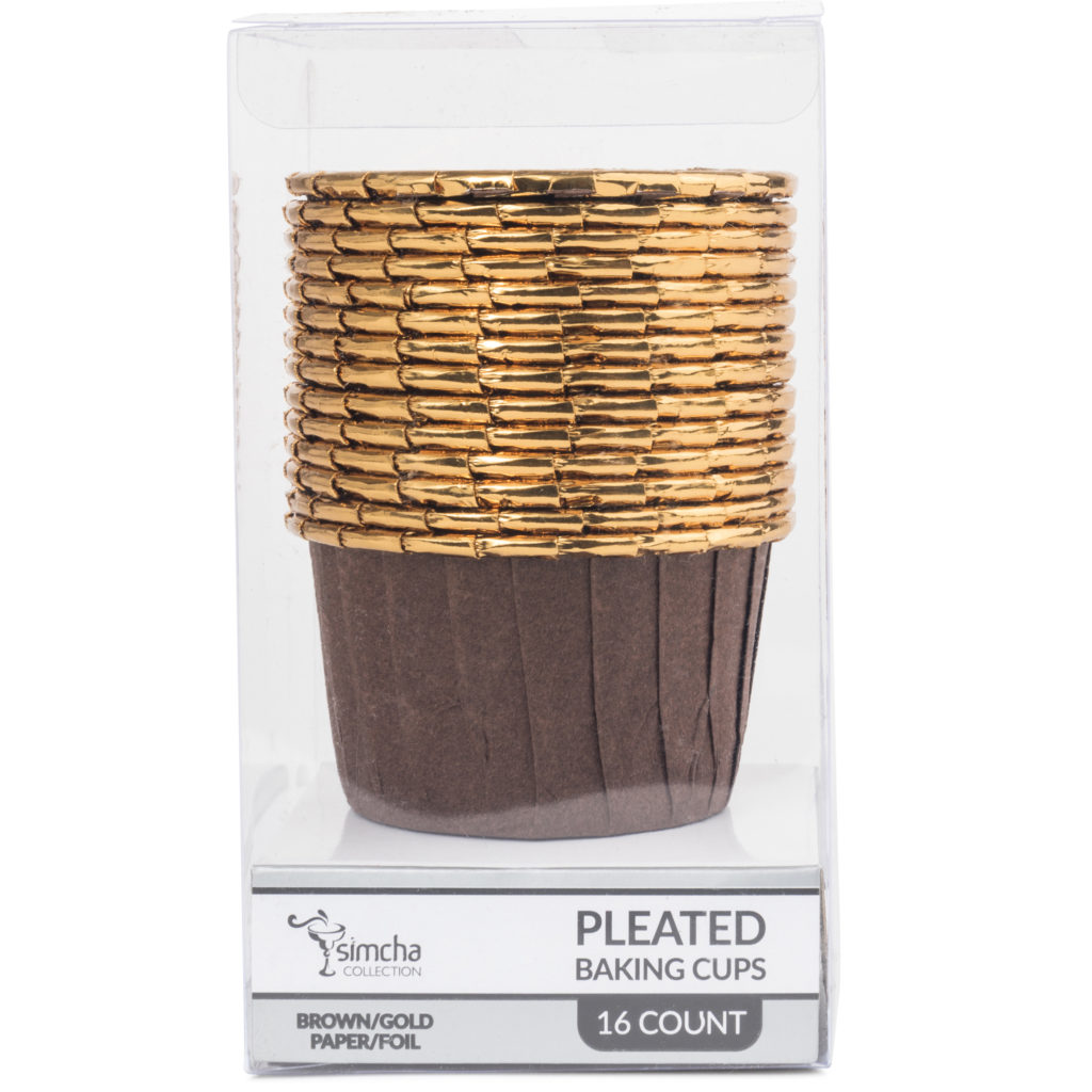 Make your muffin special by choosing Simcha Collection pleated baking cups. The brown paper cupcake holder is lined with gold foil, lending a unique and sophisticated touch to your baked goods.
