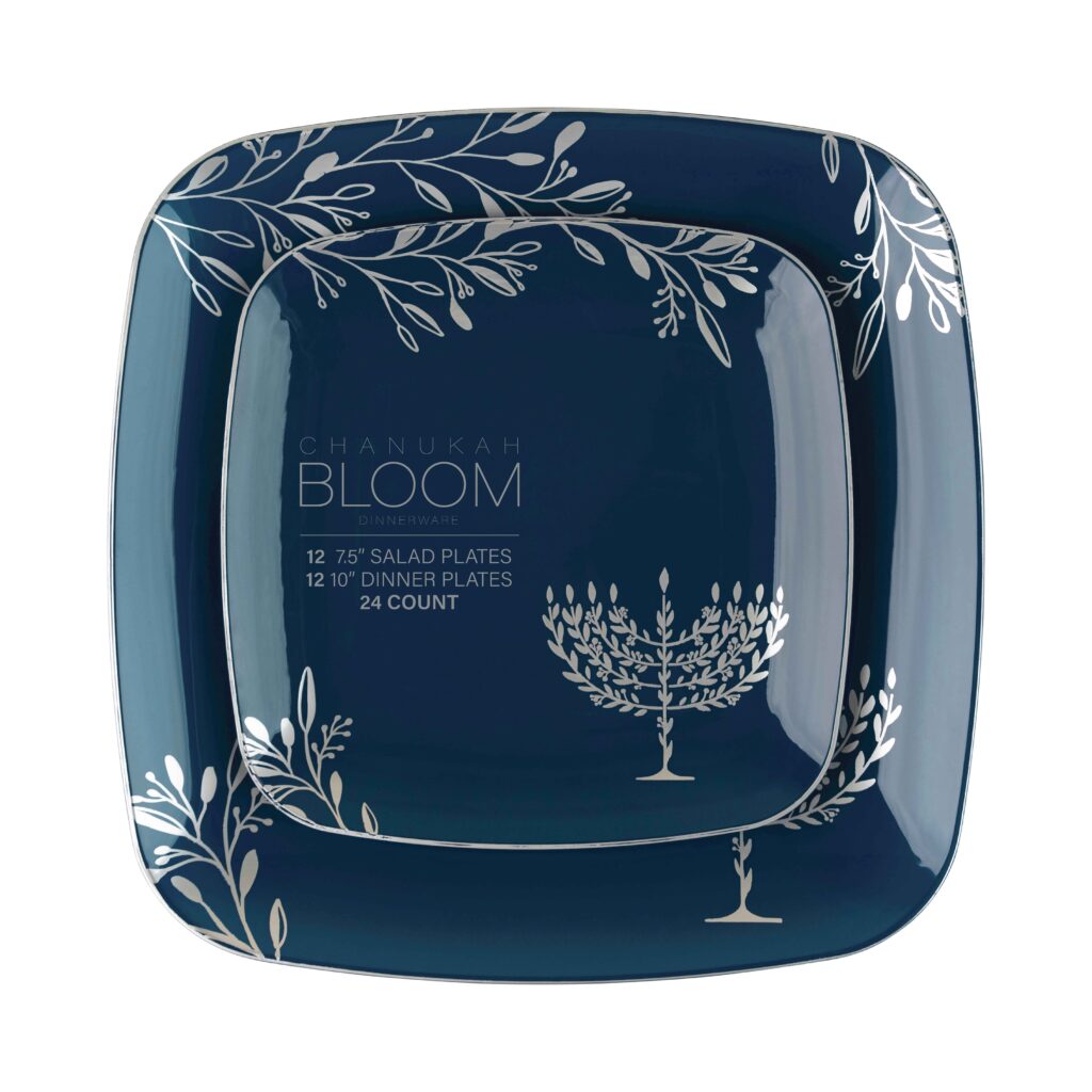 Chanukah Square Combo 7.25″ & 10″ Plates Blue/Silver (24 Count)
