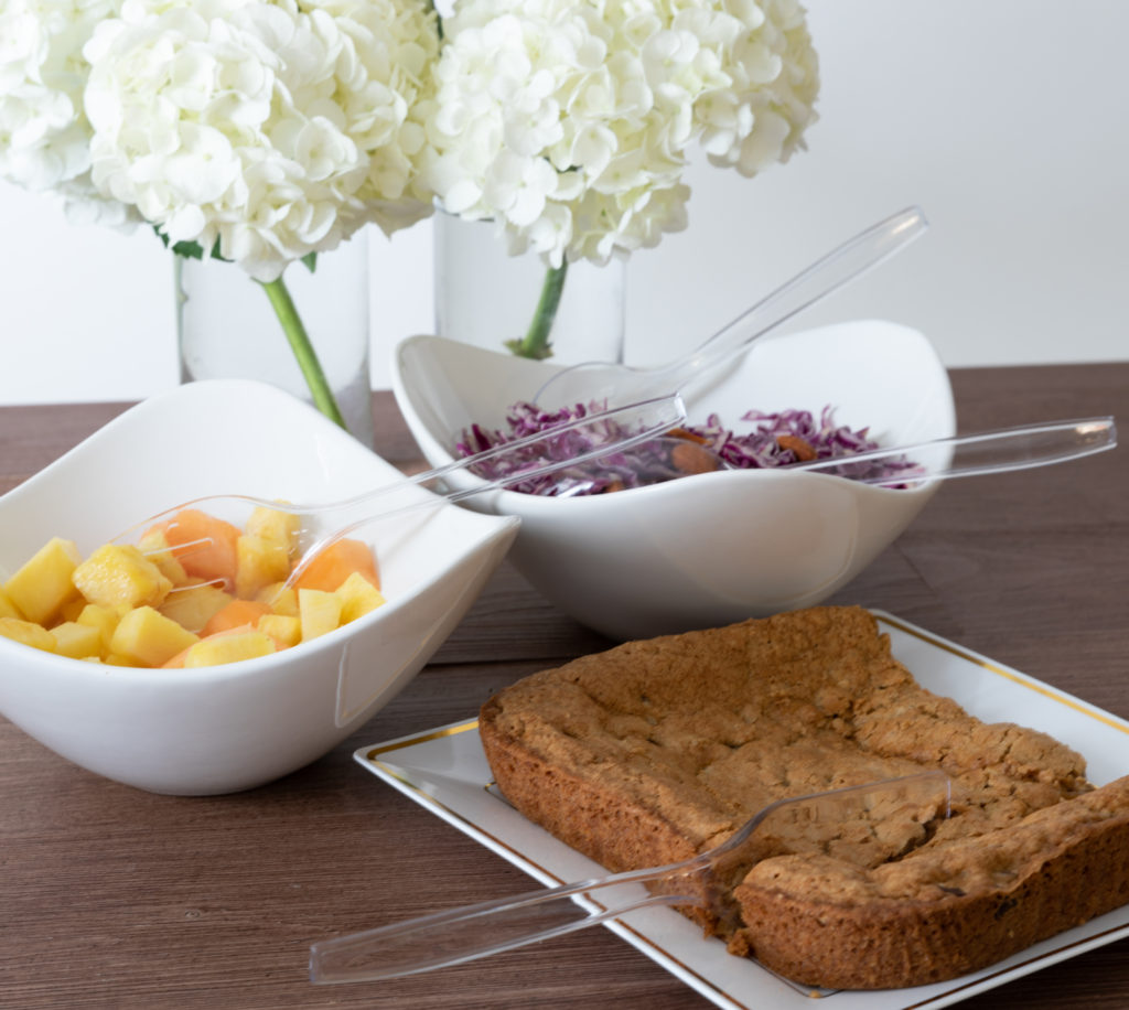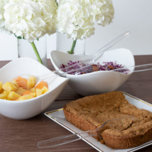 Dish out salads, casseroles or desserts with these beautiful clear plastic serving utensils. These disposable serving ware come in handy at outdoor parties or when you don’t want to bother with washing dishes after dinner.