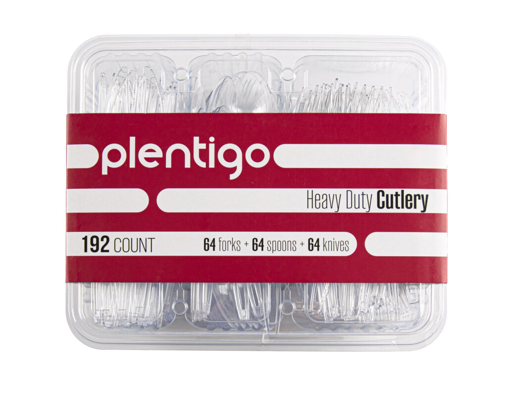 Cutlery Sectional Tray Clear 64 Forks, 64 Teaspoons, & 64 Knives (192 Count)