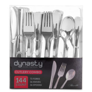Neat, classy and sophisticated, this silver plastic flatware collection is an excellent choice for dinners, parties and catered events where real flatware isn’t practical or desired.