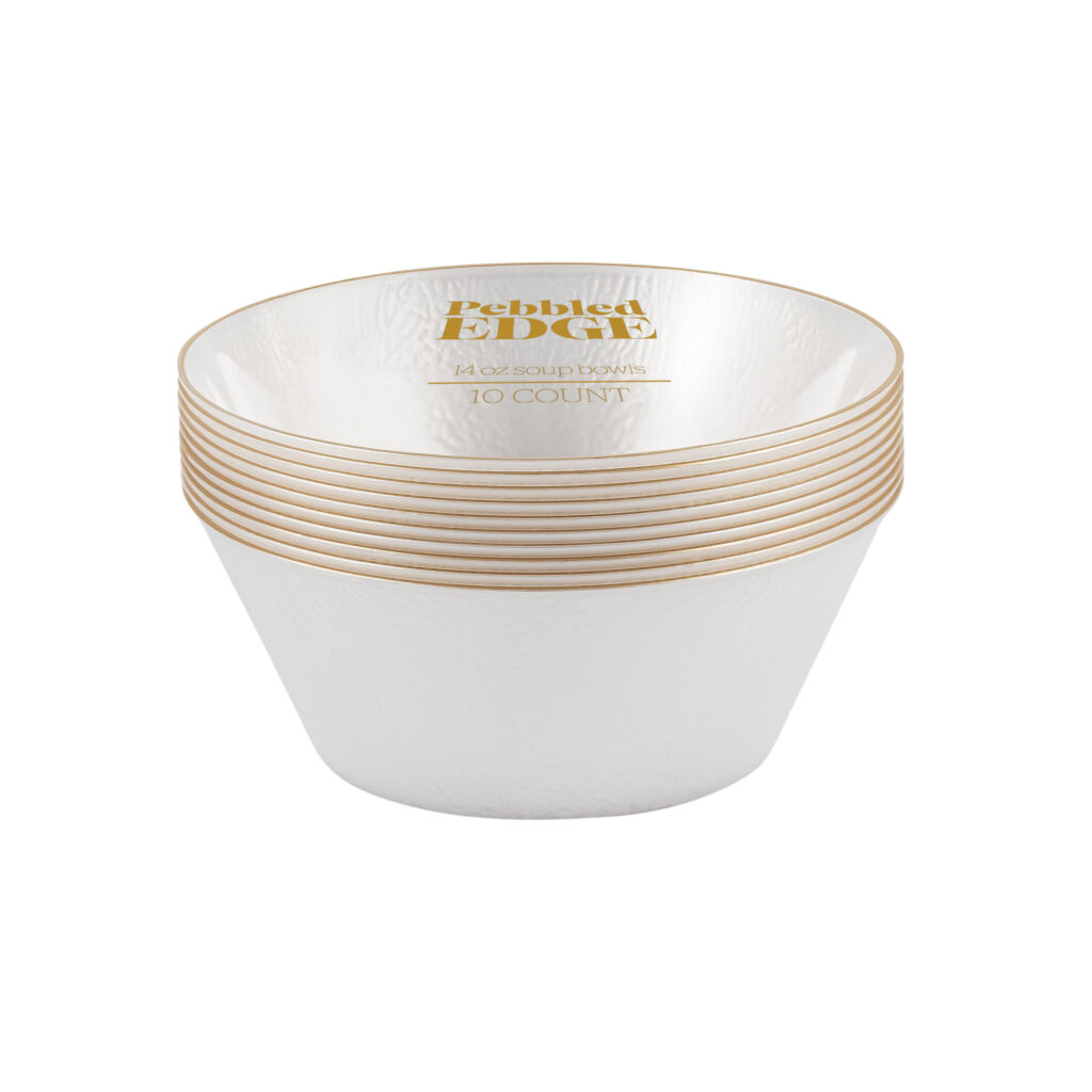 Edge Pebbled 14 oz Bowls Pearl/Gold Rim