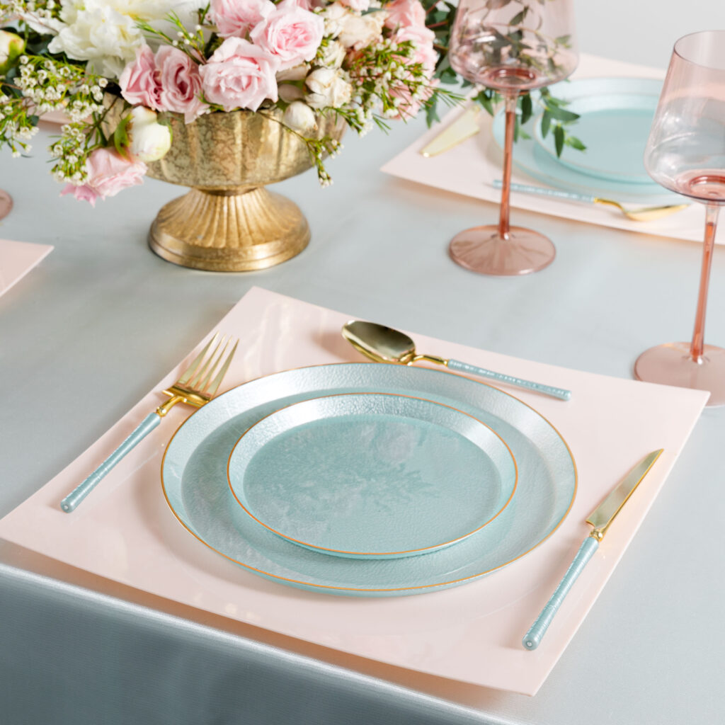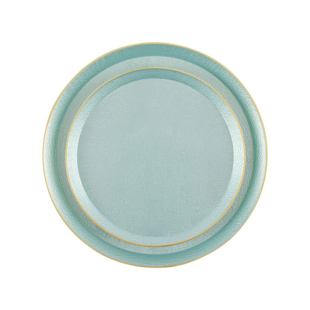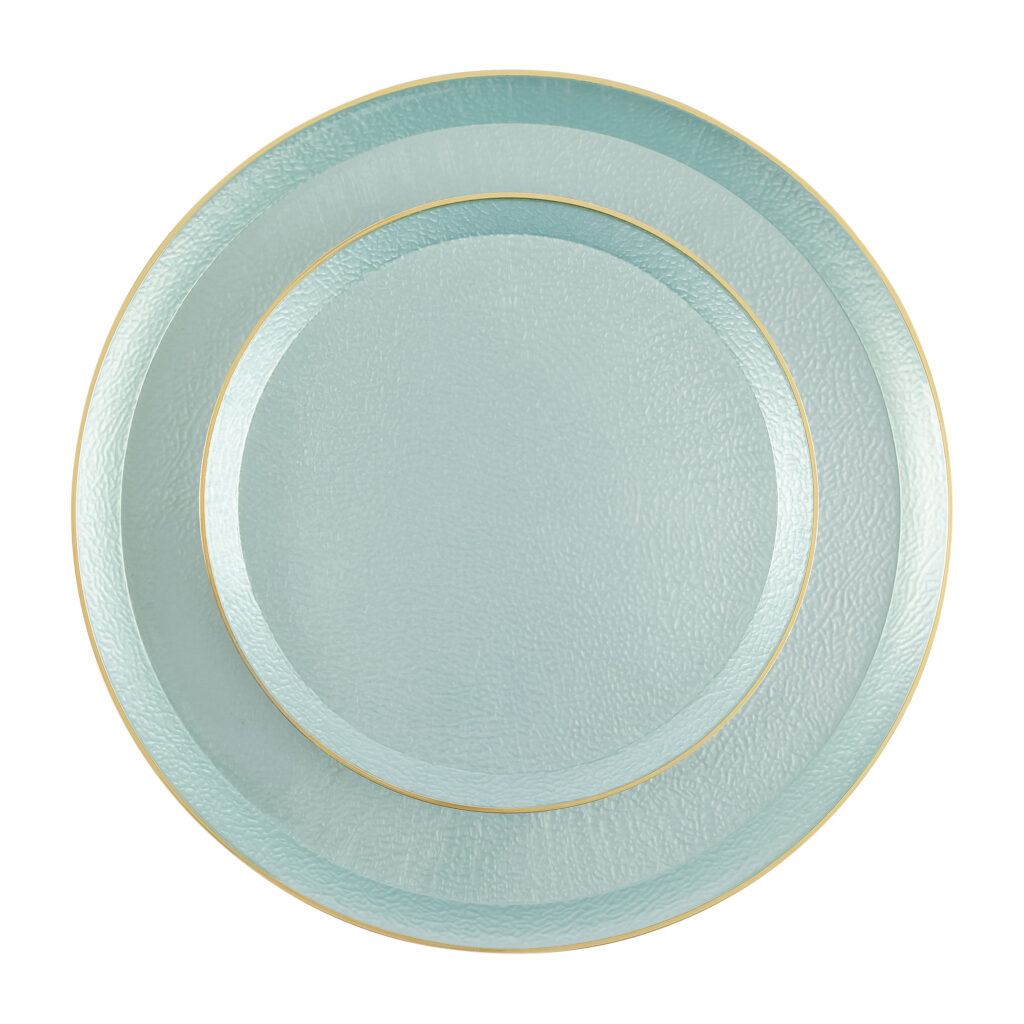 A softly pebbled texture adds handcrafted elegance to these versatile plates.