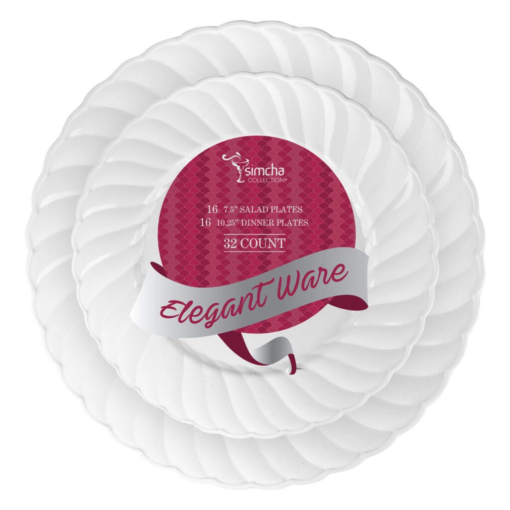 Elegant Ware Collection White Combo Plates (32 Count- 16 Count 7.5″ & 16 Count 10.25″)