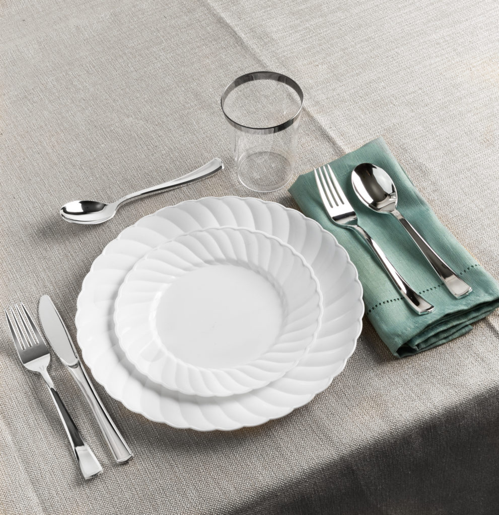 Add a touch of elegance to your party or luncheon with the classic Elegant Ware plastic plate and bowl collection. Caterers come back to this collection all the time for its understated elegance and economical cost.