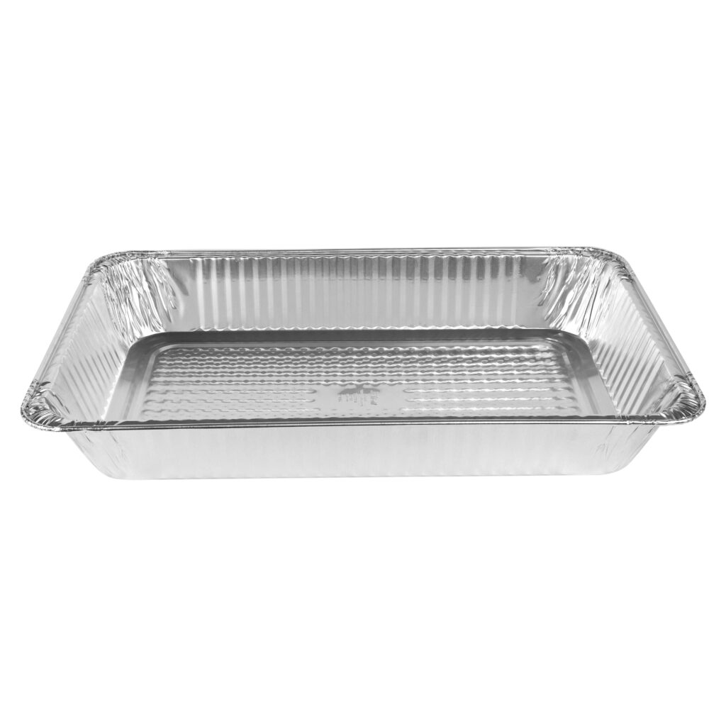 Store large quantities of food in these ultra heavy duty full size deep aluminum pans. If you’re preparing for a dinner ahead of time, conveniently freeze and then reheat food in this pan.
