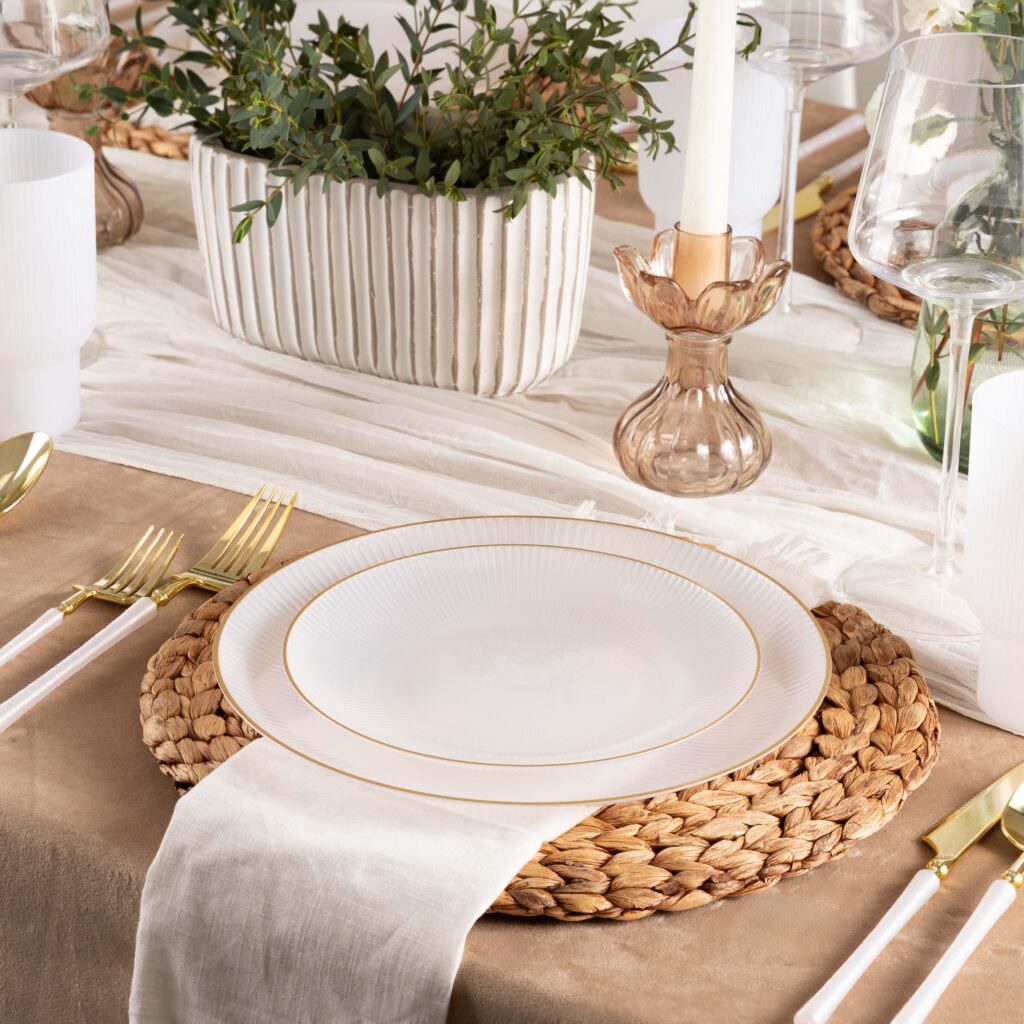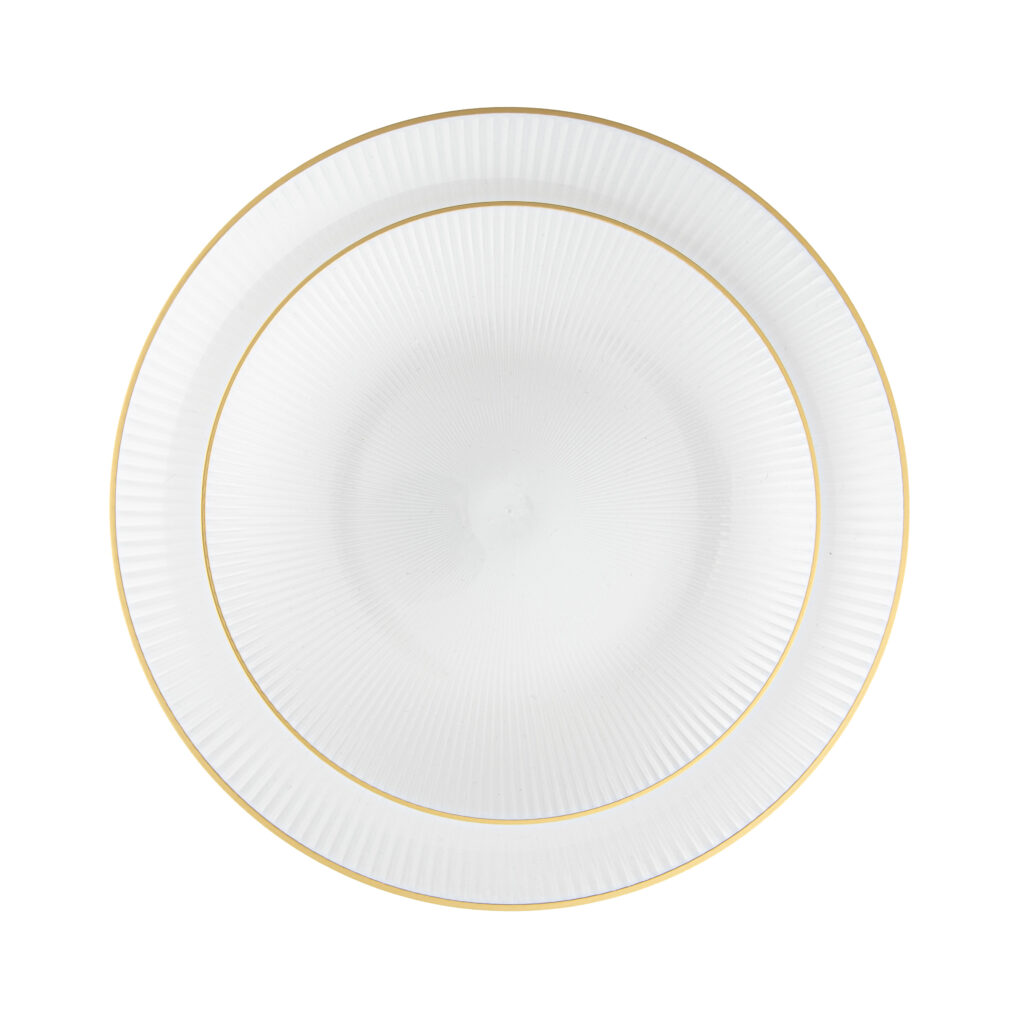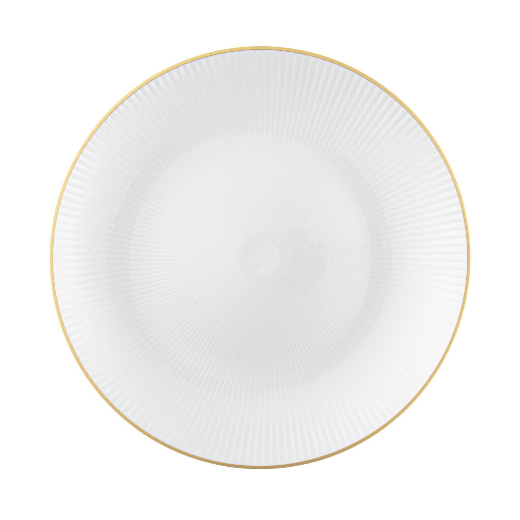 Elevate your table setting with our glass plates, designed to blend modern texture with everyday functionality. The subtle ribbed detailing adds depth and visual interest, making these plates perfect for both casual meals and special occasions.