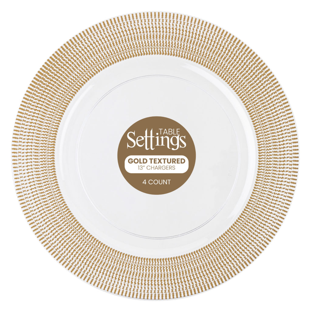 This small gold touch is a big gold upgrade! Use these transparent, gold rimmed chargers for a distinct but subtle place-setting enhancement.