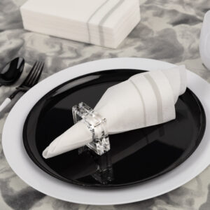 Looking to enhance your guest’s dining experience? Consider our Silver Line Guest Towels. Created from premium fibers, they are super-absorbent, durable, and soft to the touch. Their visually-appealing design adds a touch of class and glamor to any table setting. They’re not just napkins, they’re a statement of style and chic.