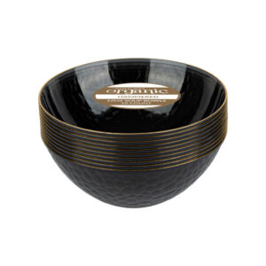 Hammered Bowls 12oz Black Transparent/ Gold Rim (10 Count)