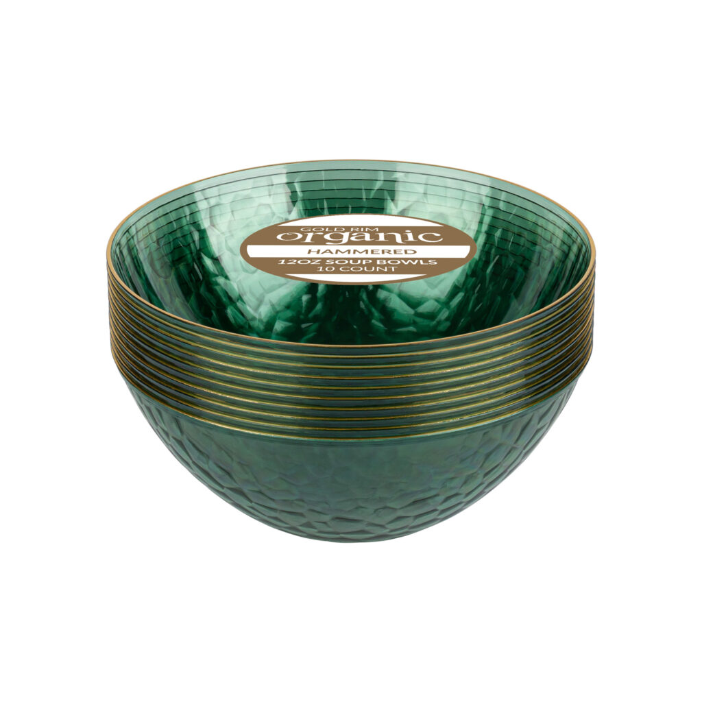 Hammered Bowls 12oz Green Transparent/ Gold Rim