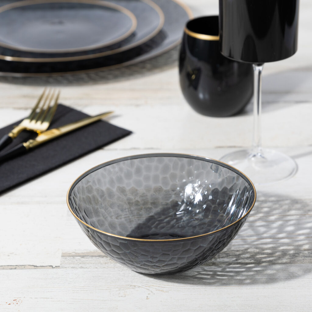 The hammered bowl is a great addition to our organic hammered plate collections. Go ahead – mix and match!