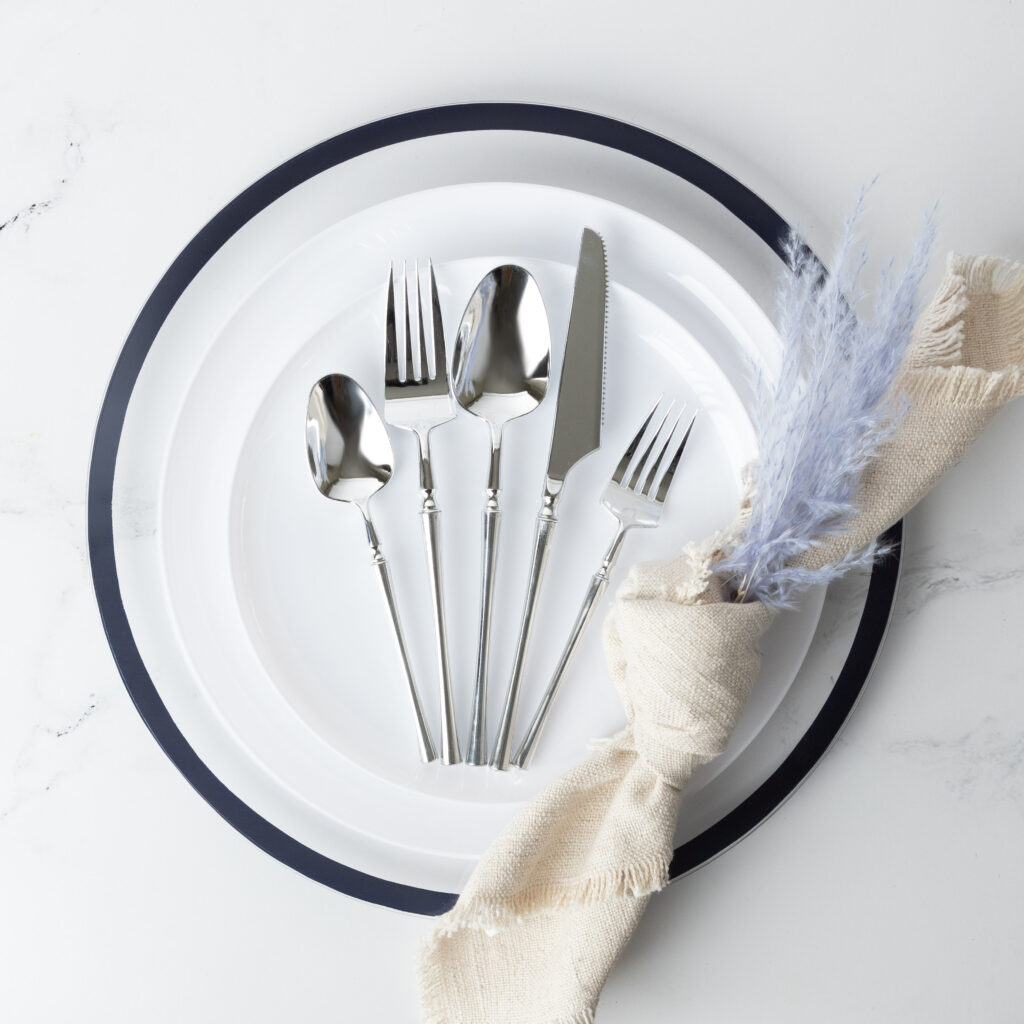 The all new infinity flatware is here to enhance your parties and formal events. Its sleek, elegant, and on trend design is sure to impress!