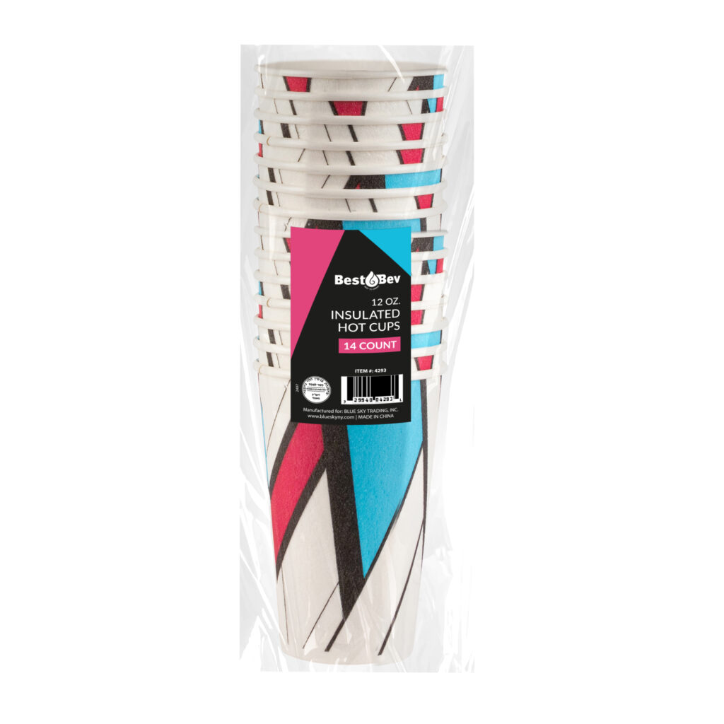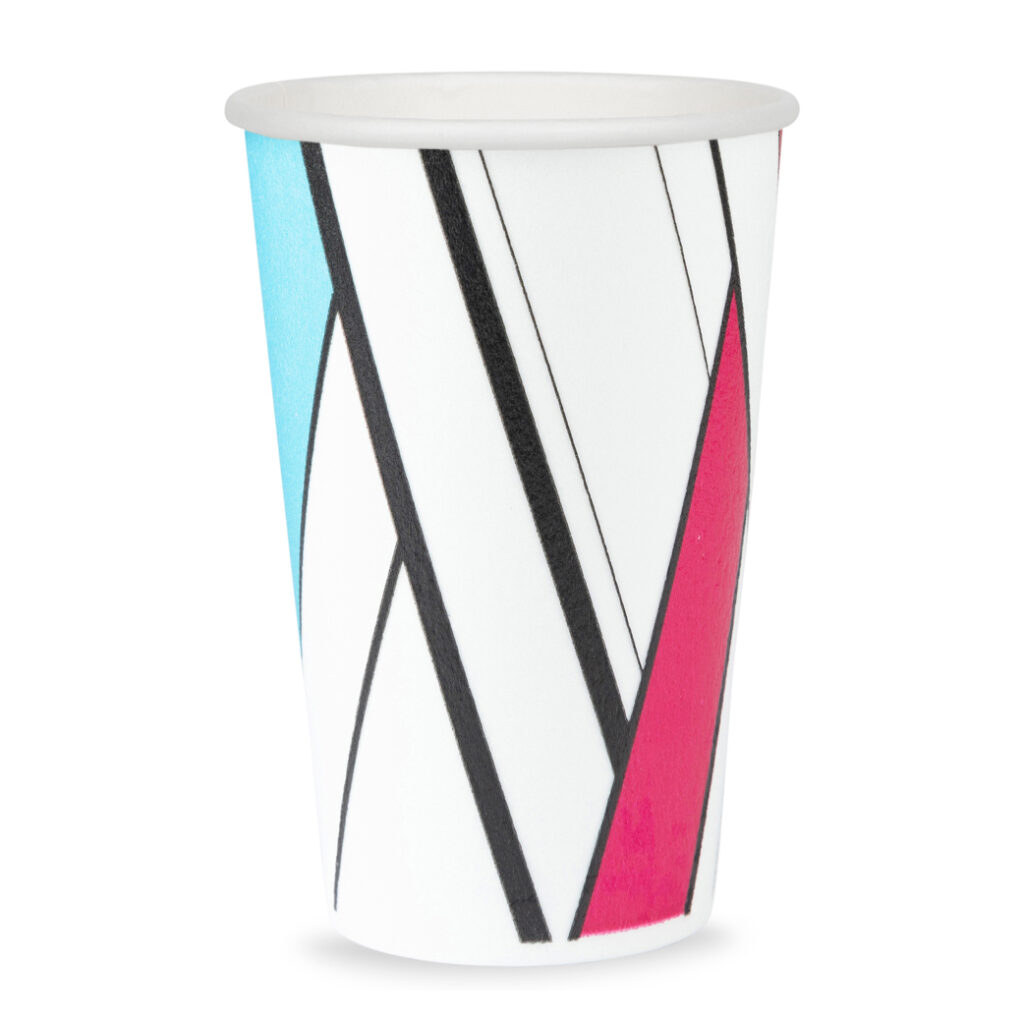 Modern, trendy and bursting with color, this is a coffee cup for the fussy millennial. This innovative cup boasts a white paper interior and artfully designed foam exterior, making it both pretty and practical for hot beverages.