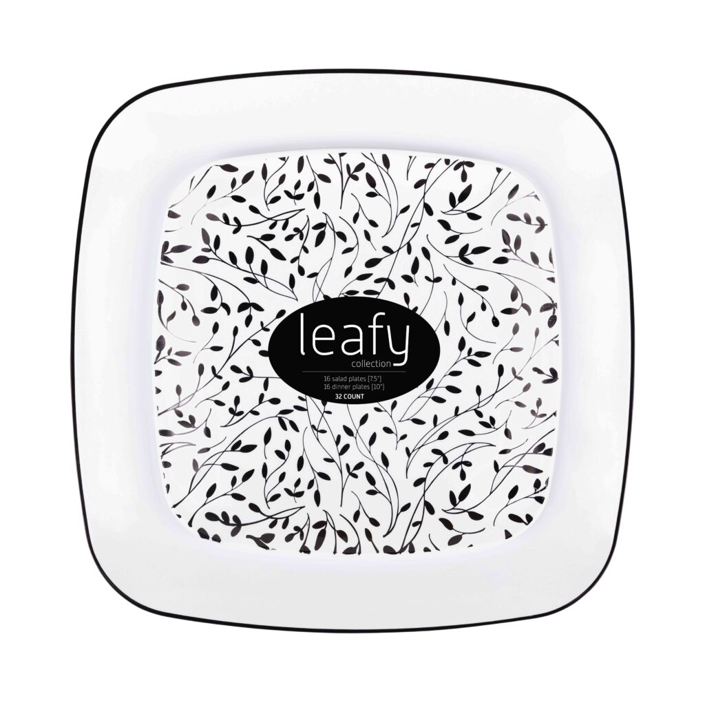 Leaf Square Organic Combo Plates 7.25″ & 10″ Black/White