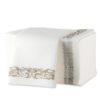 Make your dinner event extraordinary with these designer linen-like napkins. The classy silver border adds a pop of color to table settings and tying together the decor at upscale parties and catered events.