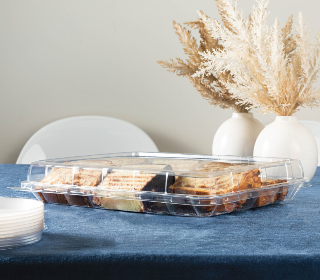 Keep your food covered and fresh with our convenient rectangle tray lid.