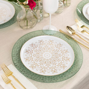 Beautiful disposable medallion plates are a must-have for any elegant occasion! These stunning plates are perfect for special dinners, anniversaries, birthdays, and other celebrations. With their chic design, these plates bring just the right note of sophistication to any event. Make your next event even more special with these disposable medallion plates.