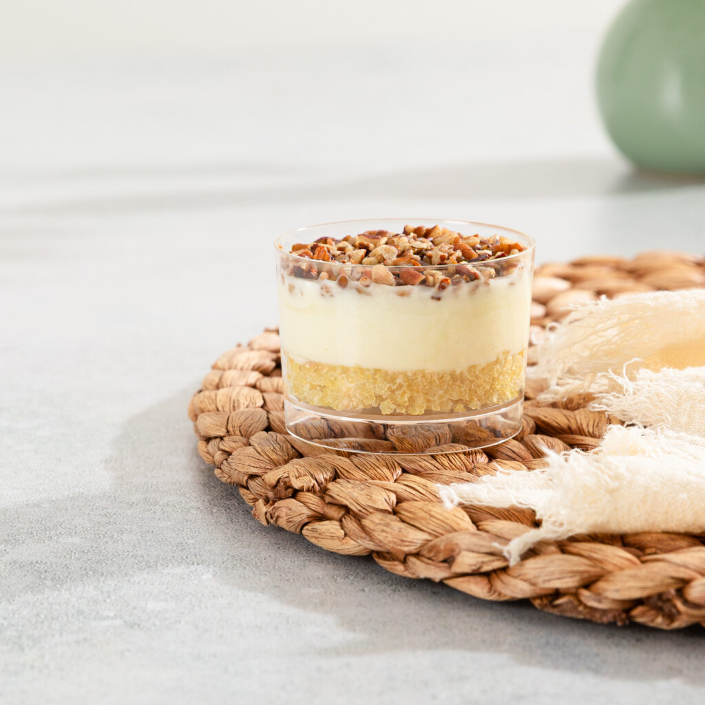 Elegant and modern, these 2 oz cylinder bowls are the perfect size for serving petite desserts, sauces, or sweet samplers with style.
