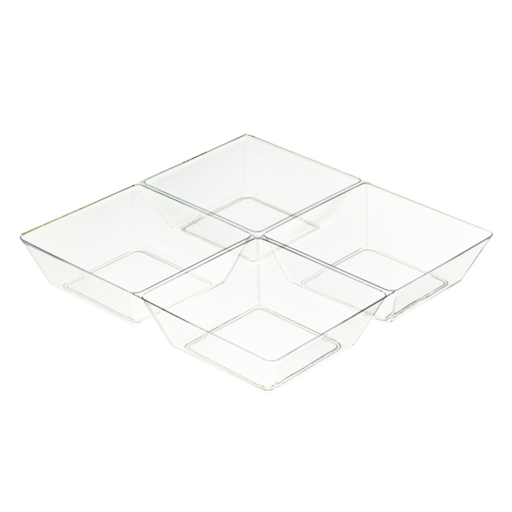 These classy 4 section plastic bowls are a favorite for event planners and party coordinators. Versatile and functional, these bowls are perfect for serving for salads, dips and spreads on a table. You can also use them as individual dessert plates by filling each section with a different dessert component.