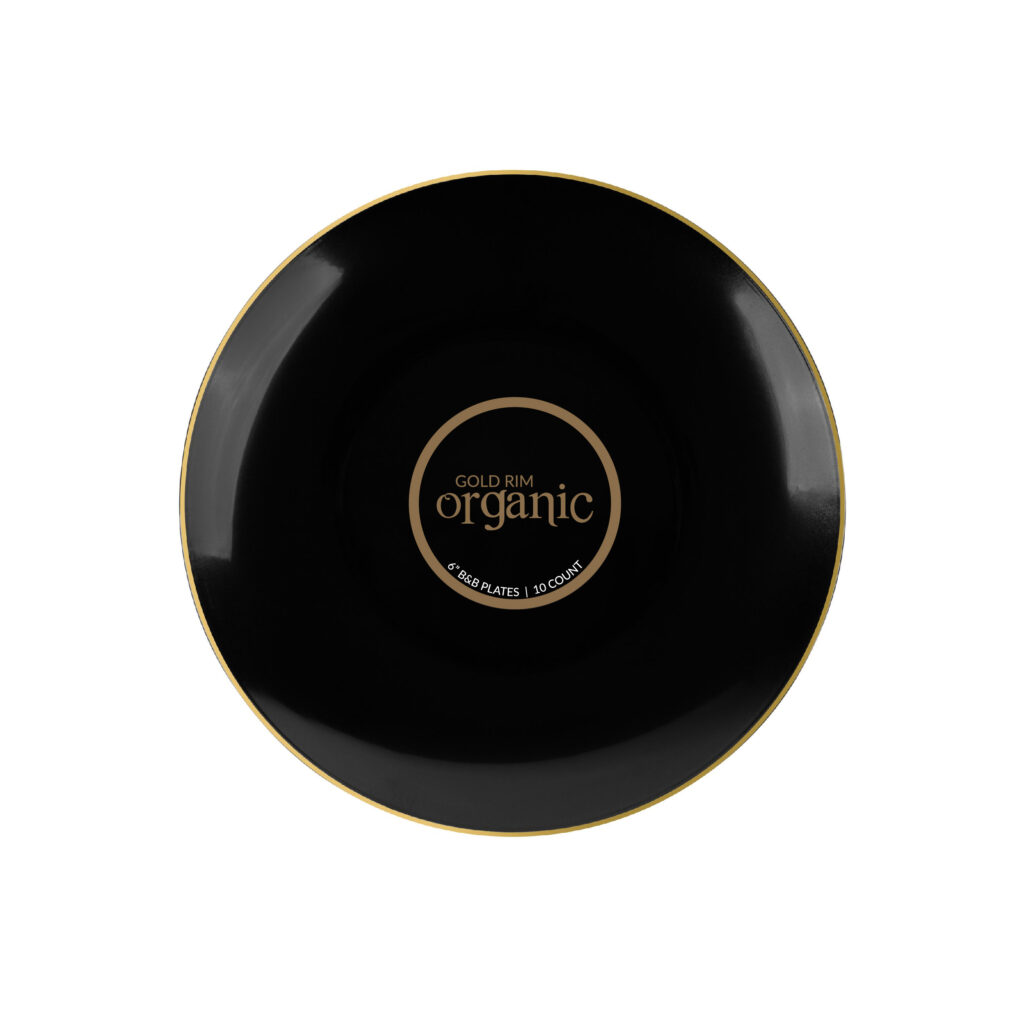 Organic 6″ Black/Gold Rim Plates (10 Count)