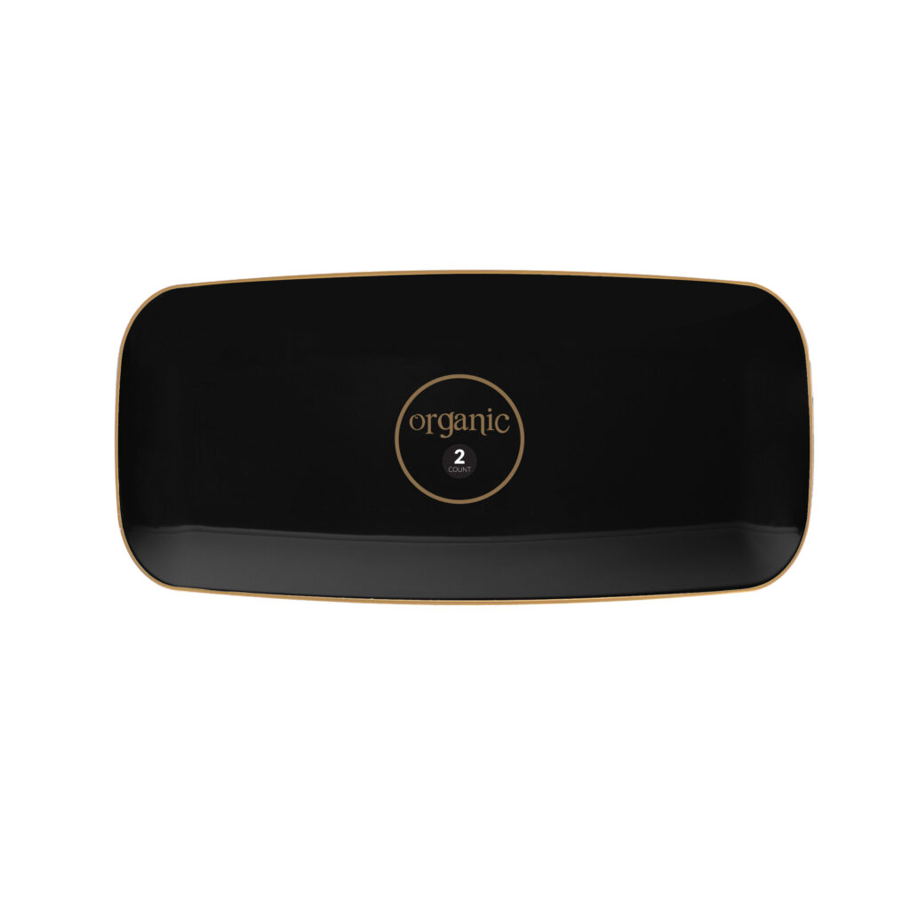 Organic Black Gold Rim Tray Rectangle 10.6″