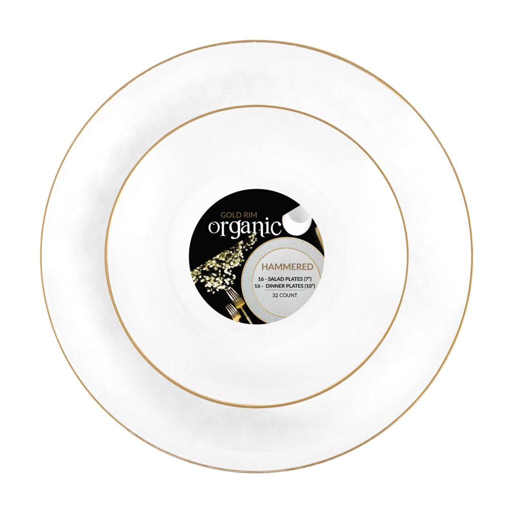 Organic Hammered White Transparent Gold Rim Combo 7″ & 10″ Plates