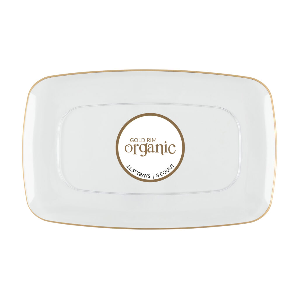 Organic Rectangle Tray Clear/Gold Rim 11.5″