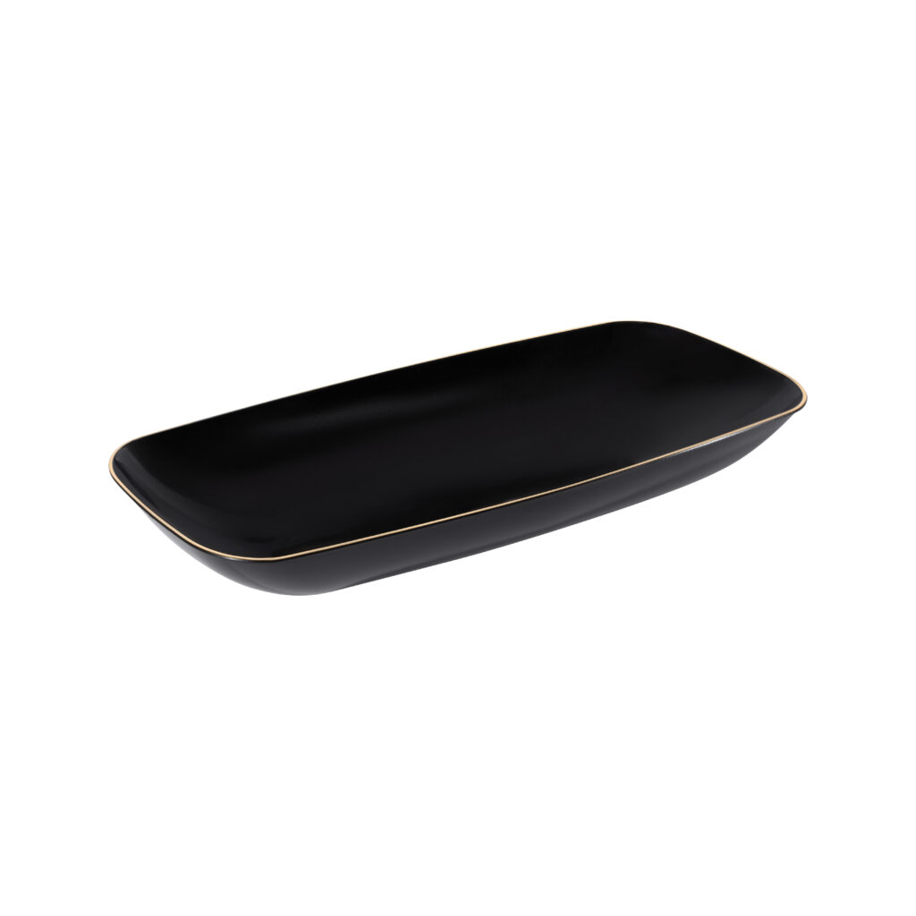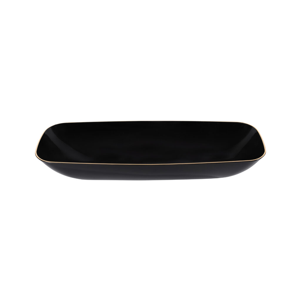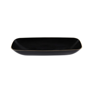 Organic Salad Bowl 32oz Rectangle 10.6″ Black/Gold Rim