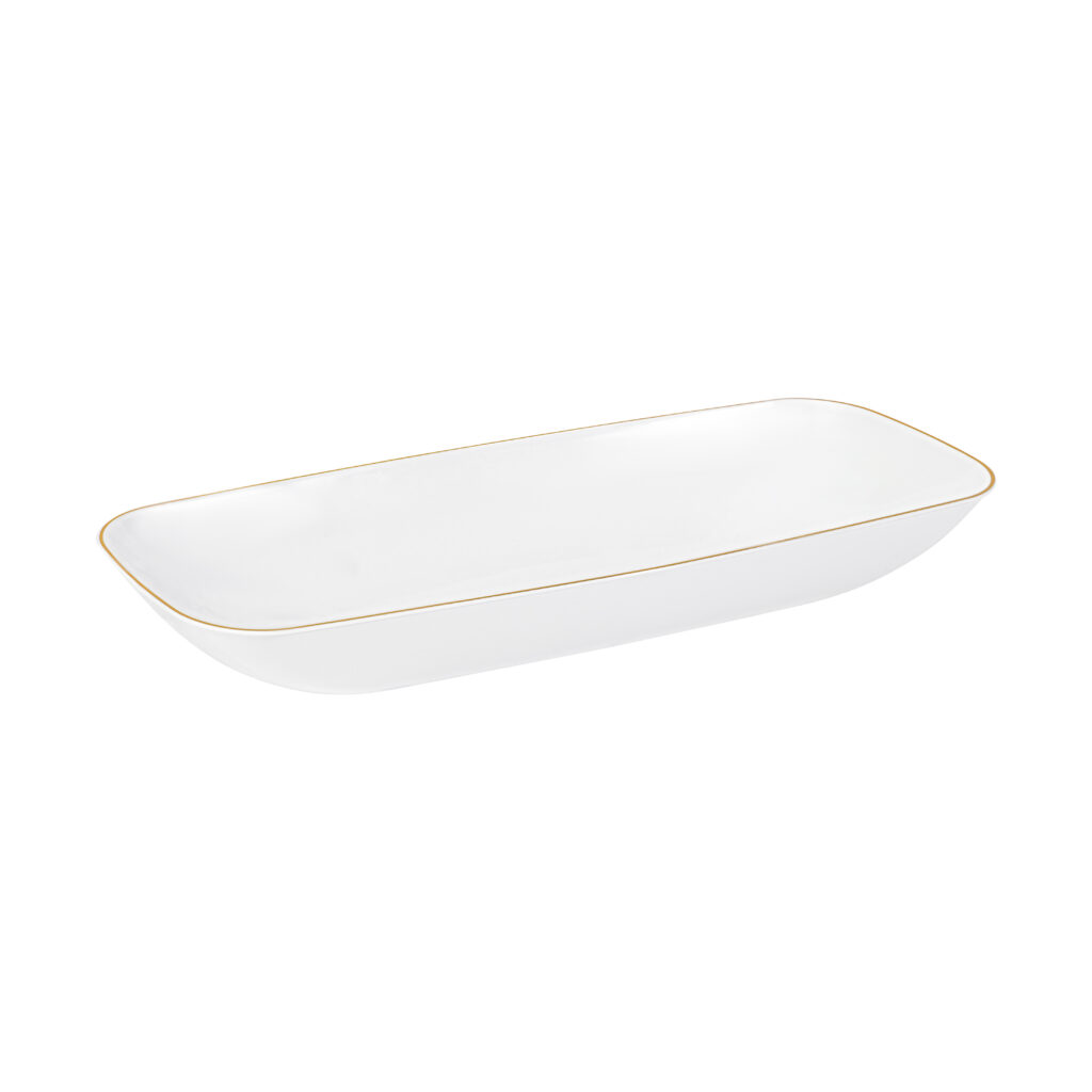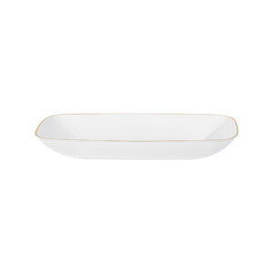 Organic Salad Bowl 32oz Rectangle 10.6″ White/Gold Rim