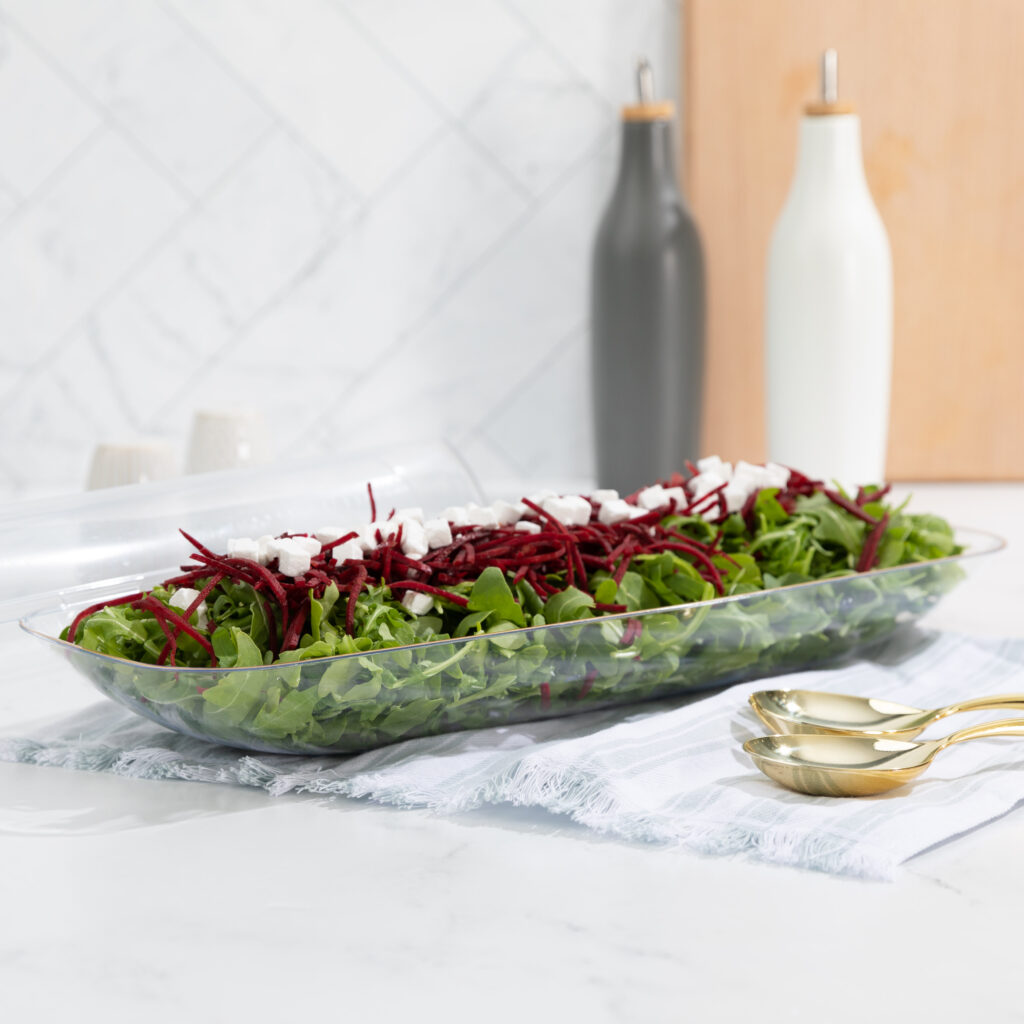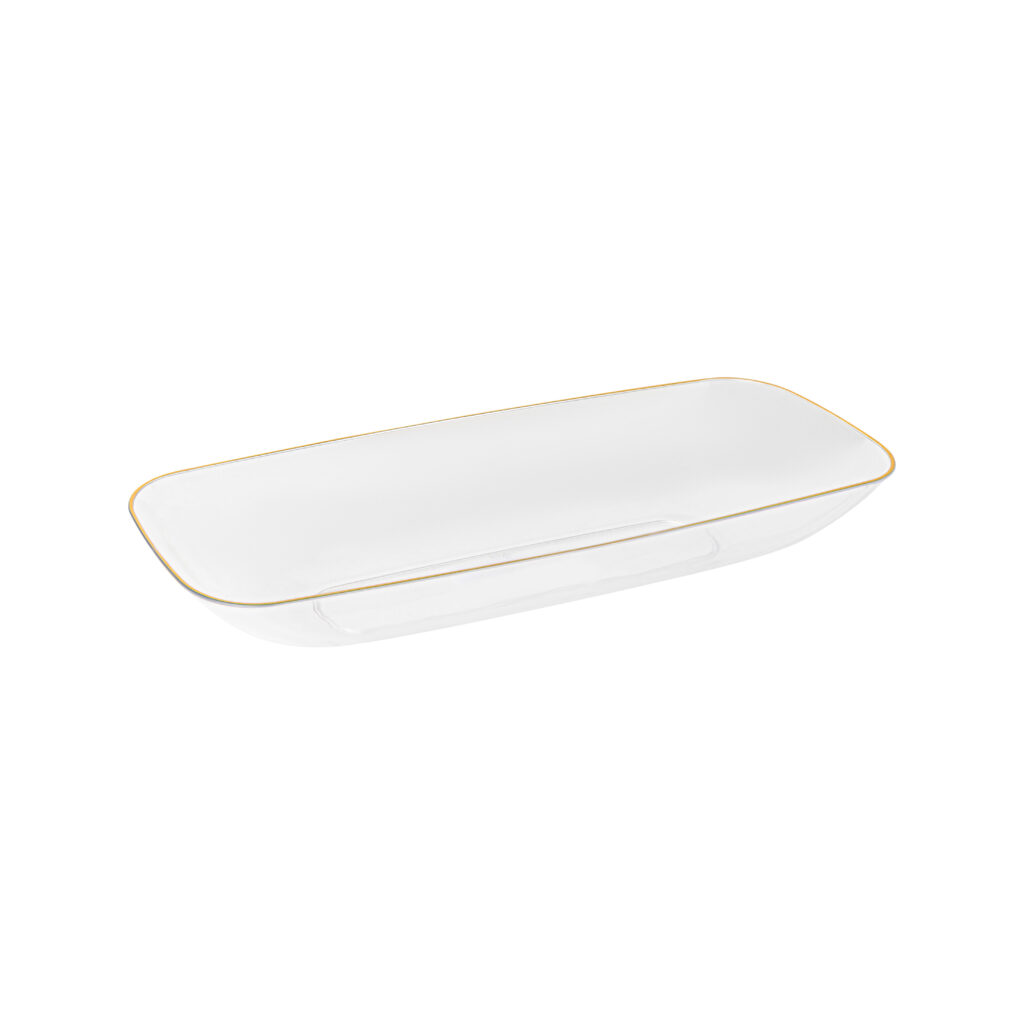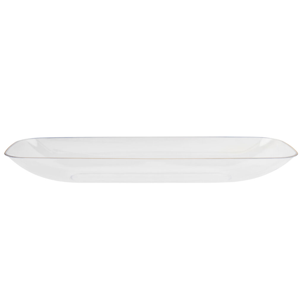 Organic Salad Bowl 76oz Rectangle 17.5″ Clear/Gold Rim