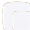 A timeless square design with white gold-rim on quality plastic plates. The plates are the perfect addition to any party! Your guests will not believe these china looking plates are disposable!