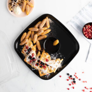 For those who appreciate simplicity and modern elegance, this 12″ square organic tray is a must-have. Its versatility makes it perfect for serving deserts, fruits, or even as a centerpiece. Don’t forget to pair it with its compatible lid to complete the package and add an extra layer of protection for your food.
