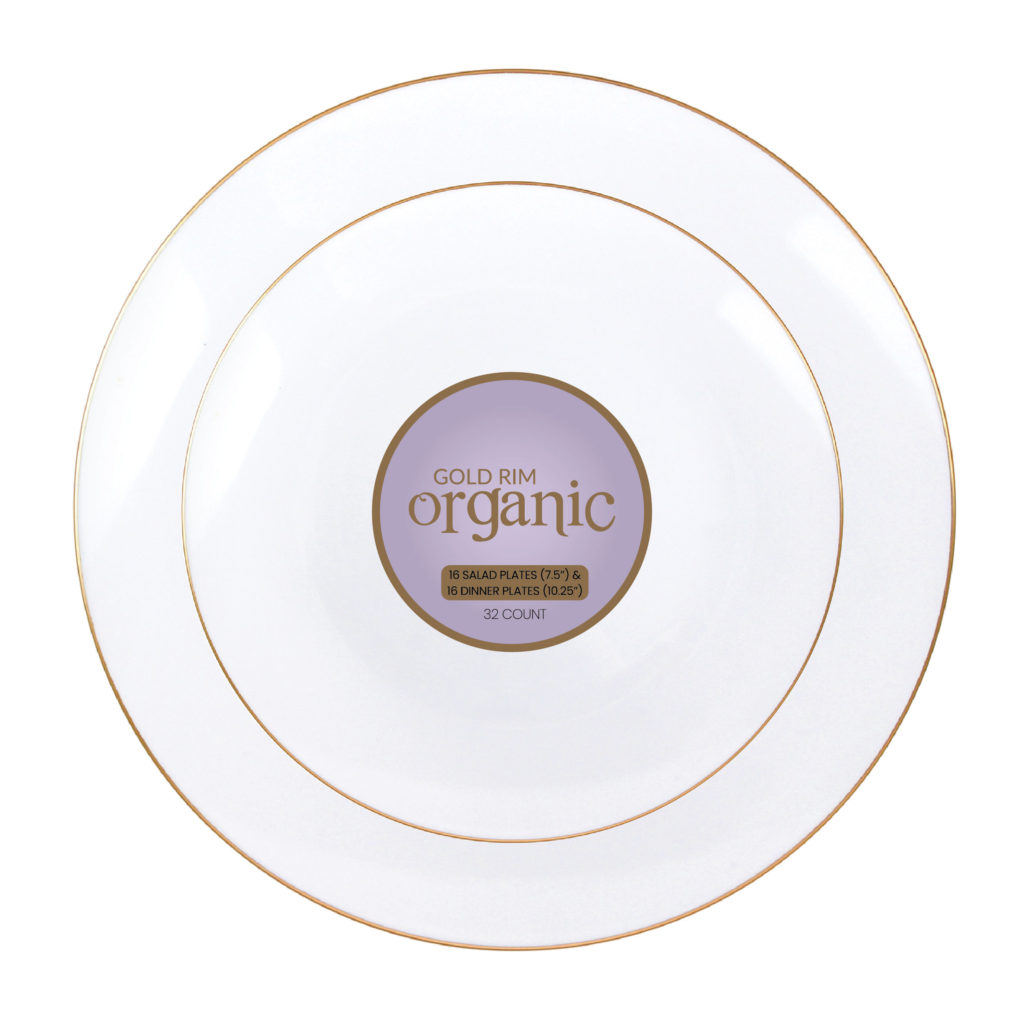 For an extraordinary event, ordinary dinnerware won’t do. The Organic Collection is made of fine white hard plastic, with a clean, gold rim edge, setting your party apart from standard. You like being unique. These plates are as unique as you.