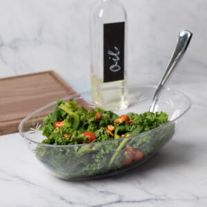 Use Simcha Collection oval plastic bowls to serve hot dishes at dinners or catered events. These bowls are simple yet elegant and are the perfect size for popular finger food. You can also use them to display snacks at parties or informal gatherings.