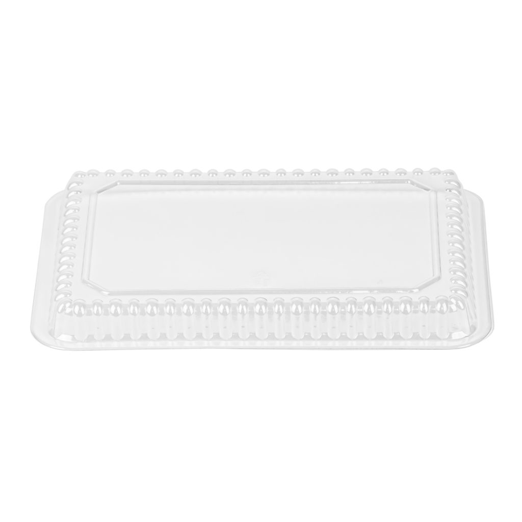 Cover your round aluminum pan with this great quality plastic lid. Simply bend pan edges over the plastic rim for a perfect fit. This is a convenient and presentable way to transport and deliver food to family, friends or restaurant customers.