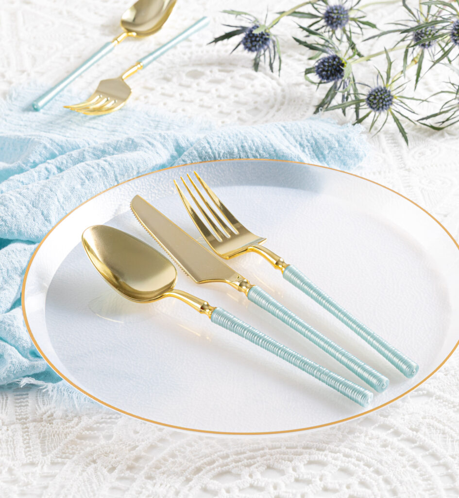 Sleek and modern, this ribbed cutlery set features textured handles that add subtle elegance to any table.