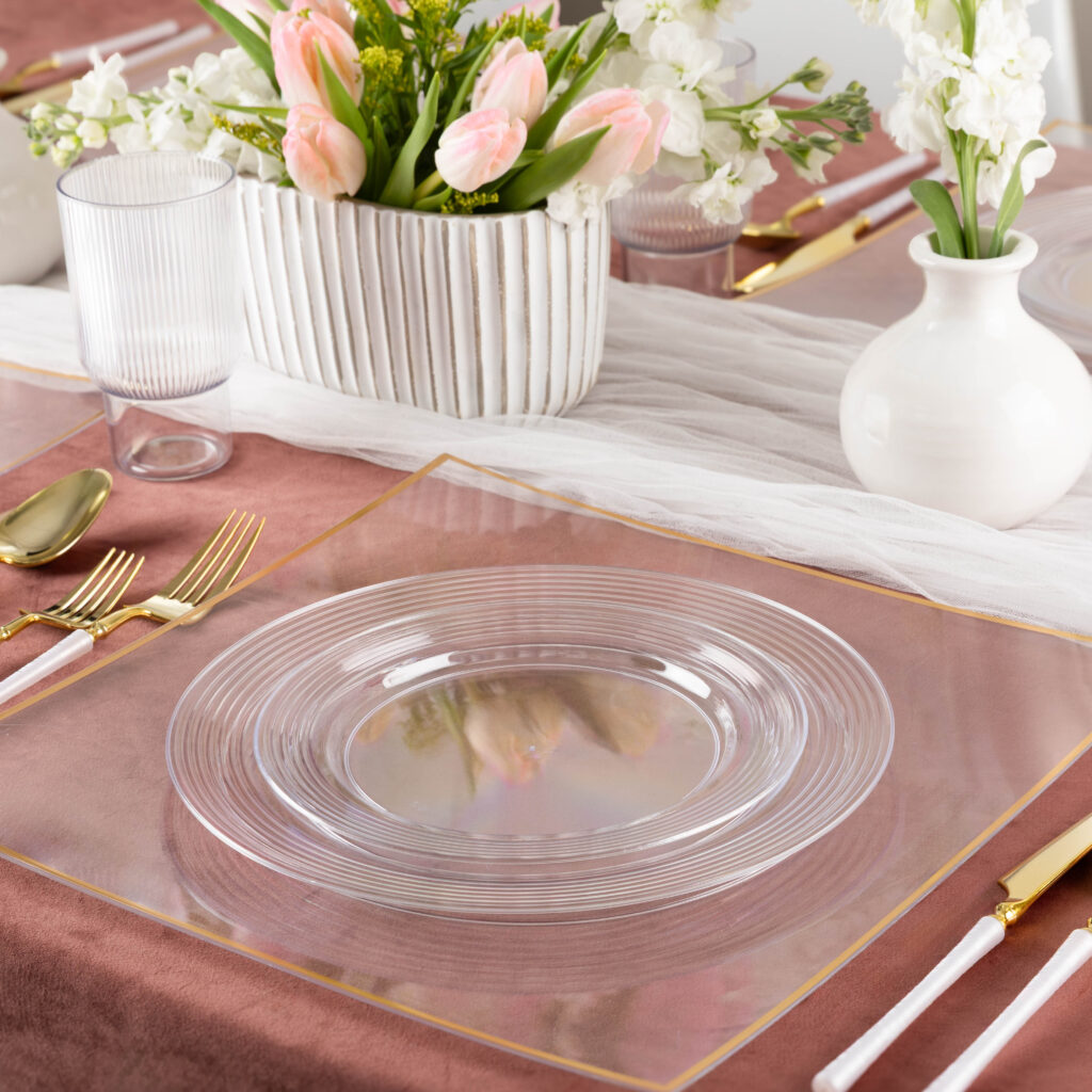Elevate your presentation with our rippled clear plates—crafted for both beauty and performance. The textured finish adds dimension and grip, making them a favorite for caterers and hosts alike.