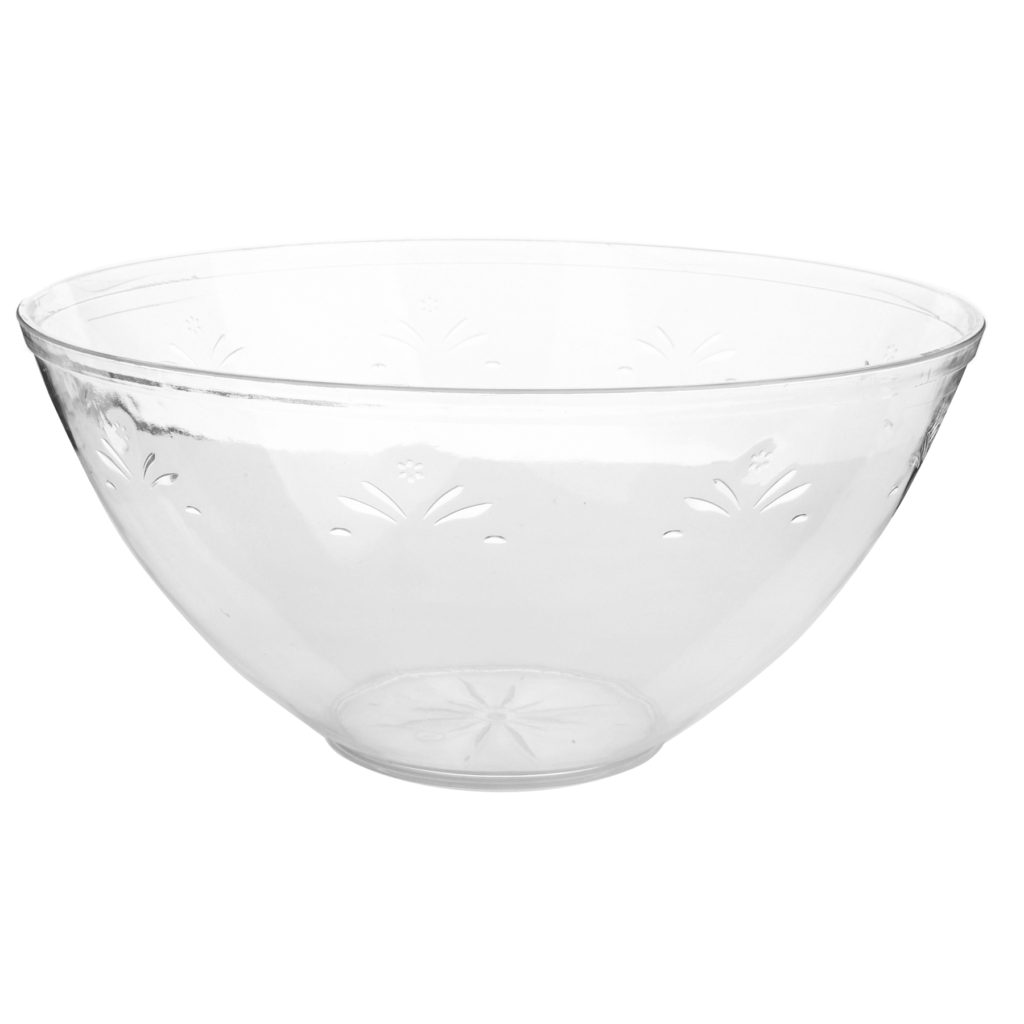 These Simcha Collection clear hard plastic round bowls are the go-to for serving salad, cubed fruit or popular party snacks. These bowls are an essential for caterers and event planners.