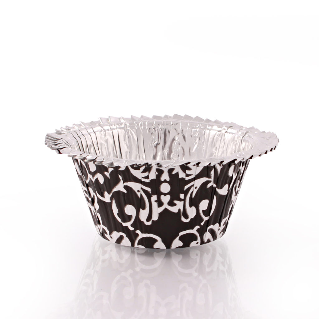 Bring on some flair to your baking with these stylish ruffle edged black design baking cups. The black design is classy and appropriate for upscale parties and events. Use them to present your muffins, cupcakes, mine cakes and soufflés.