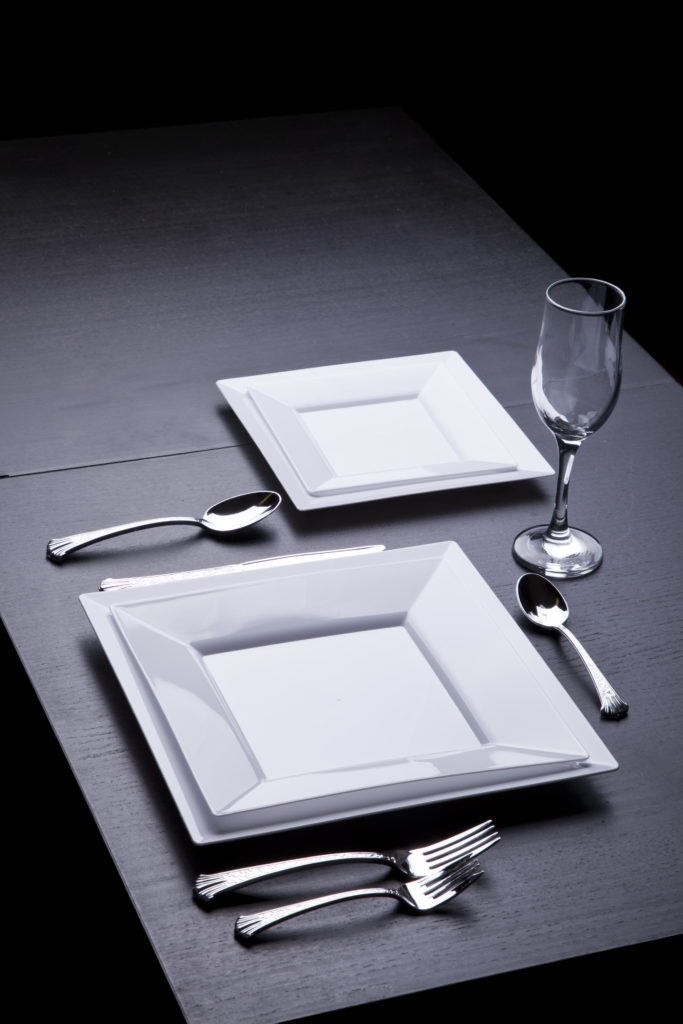 Hosting a formal dinner or catered event? With the straight lines and modern simplicity of these square hard plastic plates and bowls, Splendid Dinnerware lends a neat, crisp look to a tablescape, a perfect choice for high end dining.