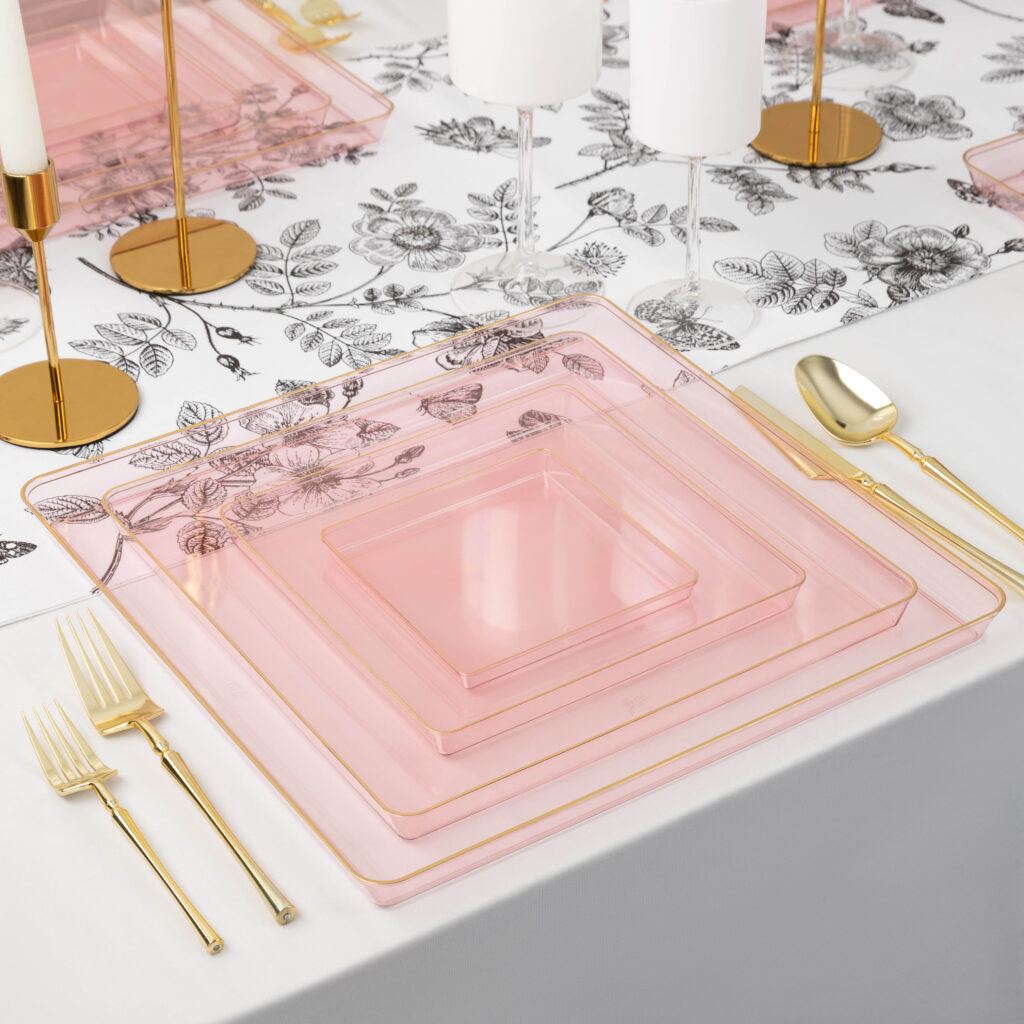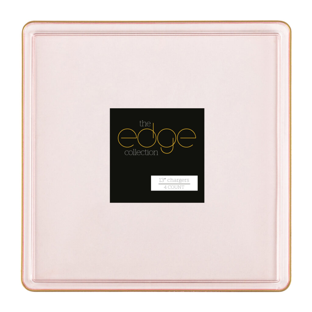 Square Edge 13″ Chargers Pink Transparent/Gold Rim